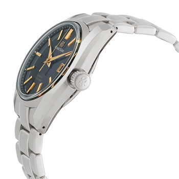Silver-tone stainless steel case and bracelet. Fixed silver-tone stainless steel bezel. Green dial with gold-tone hands and index hour markers. Minute markers around the outer rim. Dial Type: Analog. Date display at the 3 o'clock position. Grand Seiko Caliber 9S85 Automatic movement, containing 37 Jewels, bitting at 36000 vph, and has a power reserve of approximately 55 hours. Scratch resistant sapphire crystal. Screw down crown. Transparent case back. Round case shape, case size: 40 mm. Fold over clasp. Water resistant at 100 meters / 330 feet. Functions: date, hour, minute, second. Rikka Series. Casual watch style. Watch label: Japan Movt. Grand Seiko Rikka Automatic Green Dial Men's Watch SBGH271G.