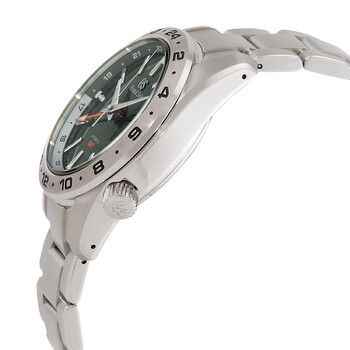 Silver-tone stainless steel case and bracelet. Uni-directional rotating silver-tone stainless steel bezel. Green dial with silver-tone hands and Arabic numeral hour markers. Minute markers around the outer rim. Dial Type: Analog. Luminescent hands and markers. Date display at the 4 o'clock position. Grand Seiko Caliber 9S66 automatic movement with a 72-hour power reserve. Scratch resistant sapphire crystal. Screw down crown. Round case shape, case size: 40.5 mm, case thickness: 14.4 mm. Band width: 20 mm. Three-fold with push button release clasp. Water resistant at 200 meters / 660 feet. Functions: date, hour, minute, second. Sport Series. Sport watch style. Watch label: Japan Movt. Item Variations: SBGM247. Grand Seiko Sport Automatic Men's Watch SBGM247G.