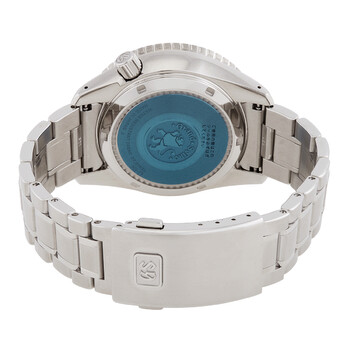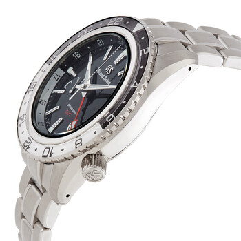 Silver-tone stainless steel case and bracelet. Rotating two tone (black and white) stainless steel bezel. Black dial with silver-tone hands and index hour markers. Minute markers around the outer rim. Dial Type: Analog. Luminescent hands and markers. Date display at the 4 o'clock position. One subdial displaying: power reserve indicator. Grand Seiko Calibre Seiko 9R66 spring drive movement with a 72-hour power reserve. Scratch resistant sapphire crystal. Screw down crown. Transparent case back. Round case shape, case size: 44 mm, case thickness: 14.7 mm. Band width: 21 mm. Fold over clasp with a safety release. Water resistant at 200 meters / 660 feet. Functions: date, GMT, hour, minute, second, power reserve indicator. Sport Series. Sport watch style. Watch label: Japan Movt. Grand Seiko Sport GMT Spring Drive Black Dial Men's Watch SBGE277.