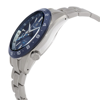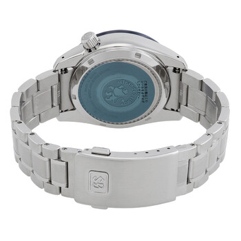 Silver-tone stainless steel case and bracelet. Uni-directional rotating blue ceramic bezel. Blue dial with silver-tone hands and index hour markers. Minute markers around the outer rim. Dial Type: Analog. Luminescent hands and markers. Date display between 4 and 5 o'clock position. Grand Seiko Caliber 9R66 automatic movement with a 72-hour power reserve. Scratch resistant sapphire crystal. Screw down crown. Solid case back. Round case shape, case size: 40.5 mm, case thickness: 14.7 mm. Band width: 20 mm. Three-fold with push button release clasp. Water resistant at 200 meters / 660 feet. Functions: date, hour, minute, second,power reserve indicator. Sport Series. Sport watch style. Watch label: Japan Movt. Grand Seiko Sport Automatic Blue Dial Men's Watch SBGE255G.
