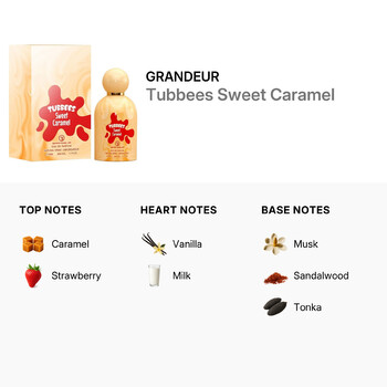 Indulge your senses with **Grandeur Tubbees Sweet Caramel**, a unisex Eau de Parfum spray that blends rich, sweet notes into a delightful fragrance experience. Crafted by the design house of Grandeur, this 1.7 oz scent wraps you in warmth and comfort, making it perfect for everyday wear or special moments when you want to stand out.
