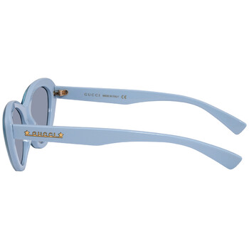 Gucci Sunglasses. Series number: GG1170S. Color code: 003. Shape: Cat Eye. Lens Width: 54 mm. Lens Height: 41 mm. Lens Bridge: 19 mm. Arm Length: 145 mm. 100% UV protection. Frame Material: Acetate. Frame Color: Light Blue. Lenses Type: Blue. Rim Style: Full-Rim. UPC/EAN code: 889652391885. Gucci Blue Cat Eye Ladies Sunglasses GG1170S 003 54.