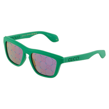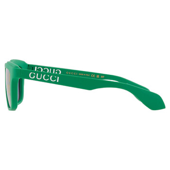 Gucci Sunglasses. Series number: GG1571S. Color code: 004. Shape: Square. Lens Width: 55 mm. Lens Bridge: 18 mm. Arm Length: 145 mm. 100% UV protection. Non-Polarized. Frame Material: Plastic. Frame Color: Green. Lenses Type: Blue Logo. Rim Style: Full-Rim. UPC/EAN code: 889652468563. Gucci Blue Logo Square Men's Sunglasses GG1571S 004 55.