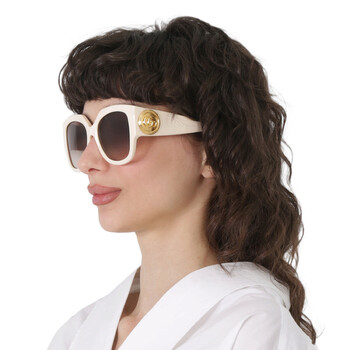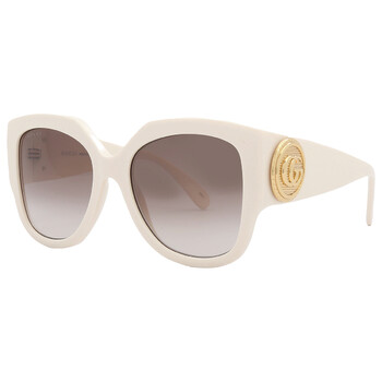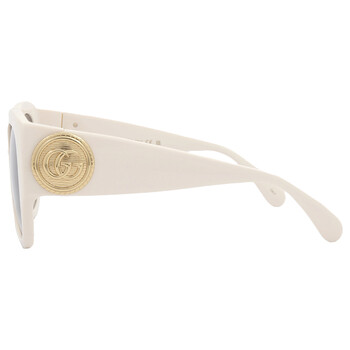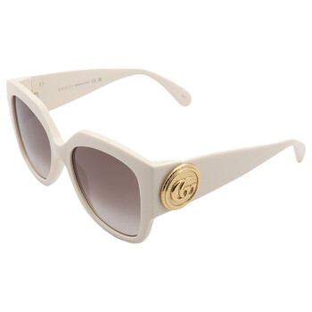 Gucci Sunglasses. Series number: GG1407S. Color code: 004. Shape: Butterfly. Lens Width: 54 mm. Lens Bridge: 19 mm. Arm Length: 140 mm. 100% UV protection. Non-Polarized. Frame Material: Recycled Acetate. Frame Color: Ivory. Lenses Type: Brown. Rim Style: Full-Rim. UPC/EAN code: 889652437873. Gucci Brown Butterfly Ladies Sunglasses GG1407S 004 54.