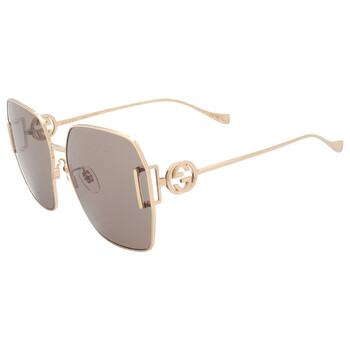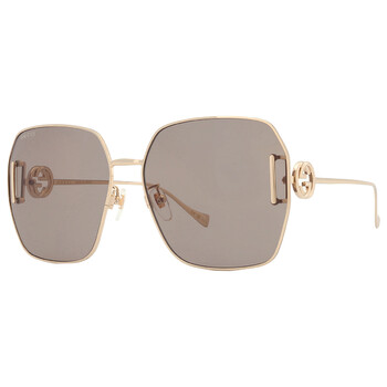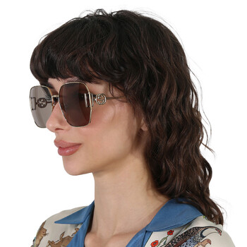 Gucci Sunglasses. Series number: GG1207SA. Color code: 005. Shape: Oversized. Lens Width: 64 mm. Lens Bridge: 16 mm. Arm Length: 140 mm. 100% UV protection. Frame Material: Metal. Frame Color: Gold. Lenses Type: Brown. Rim Style: Full-Rim. UPC/EAN code: 889652392332. Gucci Brown Oversized Ladies Sunglasses GG1207SA 005 64.