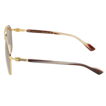 Gucci Sunglasses. Series number: GG1220S. Color code: 002. Shape: Pilot. Lens Width: 59 mm. Lens Bridge: 14 mm. Arm Length: 145 mm. 100% UV protection. Frame Material: Metal. Frame Color: Gold. Lenses Type: Brown. Rim Style: Full-Rim. UPC/EAN code: 889652394046. Gucci Brown Pilot Unisex Sunglasses GG1220S 002 59.