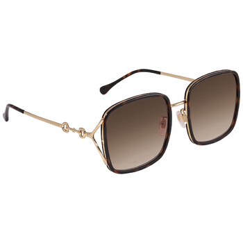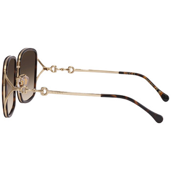 Gucci Sunglasses. Series number: GG1016SK. Color code: 003. Shape: Square. Lens Width: 58 mm. Lens Bridge: 20 mm. Arm Length: 140 mm. 100% UV protection. Frame Material: Plastic, Metal. Frame Color: Havana/Gold. Lenses Type: Brown. Rim Style: Full-Rim. UPC/EAN code: 889652357904. Gucci Brown Square Ladies Sunglasses GG1016SK 003 58.