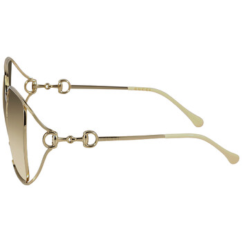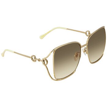Gucci Sunglasses. Series number: GG1020S. Color code: 004. Shape: Square. Lens Width: 61 mm. Lens Bridge: 16 mm. Arm Length: 135 mm. 100% UV protection. Frame Material: Metal. Frame Color: Gold. Lenses Type: Brown. Rim Style: Full-Rim. UPC/EAN code: 889652356518. Gucci Brown Square Ladies Sunglasses GG1020S 004 61.