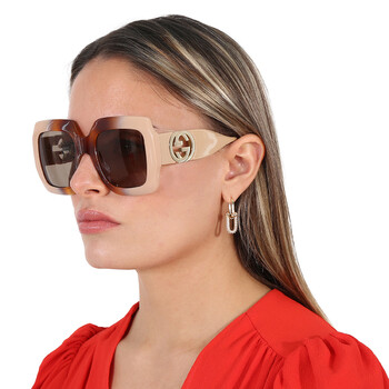 Gucci Sunglasses. Series number: GG1022S. Color code: 003. Shape: Square. Lens Width: 54 mm. Lens Bridge: 23 mm. Arm Length: 140 mm. 100% UV protection. Non-Polarized. Frame Material: Acetate. Frame Color: Havana/Ivory. Lenses Type: Brown. Rim Style: Full-Rim. UPC/EAN code: 889652356976. Gucci Brown Square Ladies Sunglasses GG1022S 003 54.