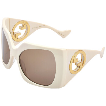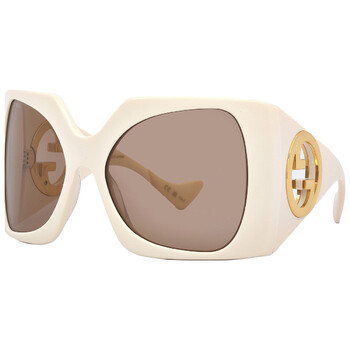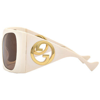 Gucci Sunglasses. Series number: GG1255S. Color code: 002. Shape: Wrap. Lens Width: 64 mm. Lens Bridge: 20 mm. Arm Length: 125 mm. 100% UV protection. Non-Polarized. Frame Material: Recycled Acetate. Frame Color: Ivory. Lenses Type: Brown. Rim Style: Full-Rim. UPC/EAN code: 889652412436. Gucci Brown Wrap Ladies Sunglasses GG1255S 002 64.