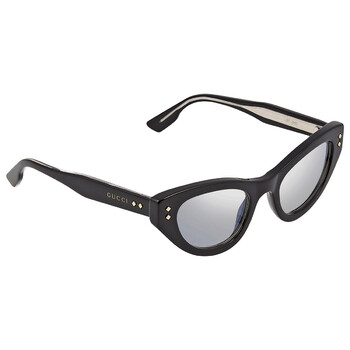 Gucci Sunglasses. Series number: GG1083S. Color code: 001. Shape: Cat Eye. Lens Width: 49 mm. Lens Bridge: 22 mm. Arm Length: 145 mm. 100% UV protection. Frame Material: Acetate. Frame Color: Black. Lenses Type: Clear Photocromatic. Rim Style: Full-Rim. Photochromic lenses darken to a sunglasses tint when exposed to sunlight, or UV ultraviolet, and return to a clear state when indoors, away from UV light. UPC/EAN code: 889652375212. Gucci Clear Photocromatic Cat Eye Ladies Sunglasses GG1083S 001 49.