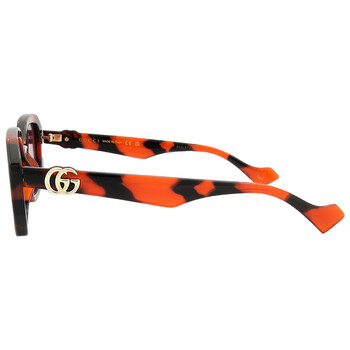 Gucci Sunglasses. Series number: GG1535S. Color code: 005. Shape: Geometric. Lens Width: 54 mm. Lens Bridge: 38 mm. Arm Length: 140 mm. 100% UV protection. Non-Polarized. Frame Material: Plastic. Frame Color: Shiny Orange Havana. Lenses Type: Dark Violet. Rim Style: Full-Rim. UPC/EAN code: 889652468266. Gucci Dark Violet Geometric Ladies Sunglasses GG1535S 005 54.
