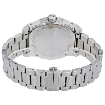 Stainless steel case with a stainless steel bracelet. Uni-directional rotating stainless steel bezel with a black top ring. Black dial with luminous silver-tone hands and dot / Arabic numeral hour markers. Minute markers around the outer rim. Dial Type: Analog. Luminescent hands and markers. Date display at the 6 o'clock position. Quartz movement. Scratch resistant sapphire crystal. Screw down crown. Solid case back. Case size: 45 mm. Case thickness: 8 mm. Round case shape. Band width: 23 mm. Deployment clasp with a push button release. Water resistant at 200 meters / 660 feet. Functions: date, hour, minute, second. Additional Info: in general, suitable for professional marine activity and serious surface water sports, but not diving. Casual watch style. Gucci Dive XL Black Dial Stainless Steel Men's Watch YA136208.