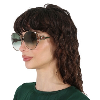 Gucci Sunglasses. Series number: GG0225S. Color code: 003. Size: 63. Shape: Round. Lens Width: 63 mm. Lens Bridge: 17 mm. Arm Length: 130 mm. 100% UV Protection. Non-Polarized. Frame Material: Metal. Frame Color: Gold, Green, Red. Lenses Type: Green Gradient. UPC/EAN code: 889652090481. Gucci Green Gradient Sunglasses GG0225S 003 63.