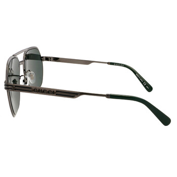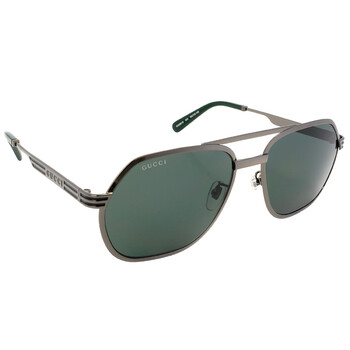 Gucci Sunglasses. Series number: GG0981S. Color code: 002. Color: Green. Shape: Navigator. Lens Width: 60 mm. Lens Bridge: 18 mm. Arm Length: 145 mm. 100% UV Protection. Non-Polarized. Frame Material: Metal. Frame Color: Dark Ruthenium. Lenses Type: Green. Rim Style: Full-Rim. UPC/EAN code: 889652341606. Gucci Green Navigator Men's Sunglasses GG0981S 002 60.