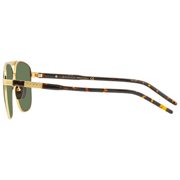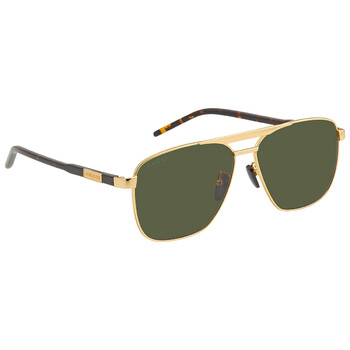 Gucci Sunglasses. Series number: GG1164S. Color code: 004. Shape: Navigator. Lens Width: 58 mm. Lens Bridge: 13 mm. Arm Length: 145 mm. 100% UV protection. Non-Polarized. Frame Material: Metal. Frame Color: Gold. Lenses Type: Green. Rim Style: Full-Rim. UPC/EAN code: 889652379395. Gucci Green Navigator Men's Sunglasses GG1164S 004 58.