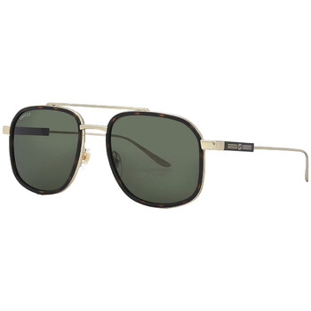Gucci Sunglasses. Series number: GG1310S. Color code: 002. Shape: Navigator. Lens Width: 56 mm. Lens Bridge: 20 mm. Arm Length: 145 mm. 100% UV protection. Frame Material: Metal. Frame Color: Shiny Gold;Havana. Lenses Type: Green. Rim Style: Full-Rim. UPC/EAN code: 889652413396. Gucci Green Navigator Men's Sunglasses GG1310S 002 56.