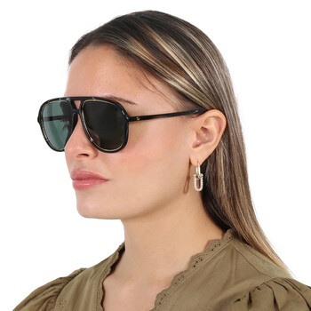 Gucci Sunglasses. Series number: GG1077S. Color code: 002. Shape: Pilot. Lens Width: 57 mm. Lens Bridge: 15 mm. Arm Length: 140 mm. 100% UV protection. Frame Material: Plastic. Frame Color: Black. Lenses Type: Green. Rim Style: Full-Rim. UPC/EAN code: 889652379074. Gucci Green Pilot Ladies Sunglasses GG1077S 002 57.