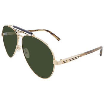 Gucci Sunglasses. Series number: GG1287S. Color code: 003. Shape: Pilot. Lens Width: 61 mm. Lens Bridge: 11 mm. Arm Length: 145 mm. 100% UV protection. Non-Polarized. Frame Material: Metal. Frame Color: Shiny Gold/Havana. Lenses Type: Green. Rim Style: Full-Rim. UPC/EAN code: 889652414157. Gucci Green Pilot Men's Sunglasses GG1287S 003 61.