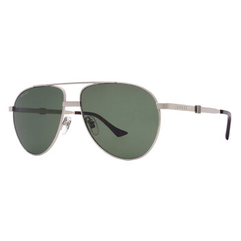 Gucci Sunglasses. Series number: GG1440S. Color code: 002. Shape: Pilot. Lens Width: 59 mm. Lens Bridge: 14 mm. Arm Length: 145 mm. 100% UV protection. Non-Polarized. Frame Material: Metal. Frame Color: Shiny Silver. Lenses Type: Green. Rim Style: Full-Rim. UPC/EAN code: 889652439976. Gucci Green Pilot Men's Sunglasses GG1440S 002 59.