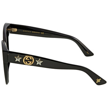 Gucci Sunglasses. Series number: GG0208S. Color code: 001. Size: 49. Shape: Butterfly. Lens Width: 49 mm. Lens Bridge: 16 mm. Arm Length: 140 mm. 100% UV Protection. Non-Polarized. Frame Material: Plastic. Frame Color: Black. Lenses Type: Grey. Rim Style: Full-Rim. UPC/EAN code: 889652091266. Gucci Grey Butterfly Ladies Sunglasses GG0208S 001 49.