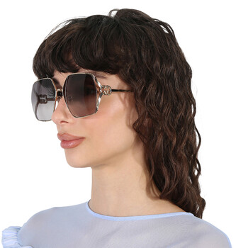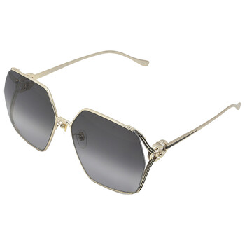 Gucci Sunglasses. Series number: GG1322SA. Color code: 001. Shape: Butterfly. Lens Width: 64 mm. Lens Bridge: 16 mm. Arm Length: 135 mm. 100% UV protection. Non-Polarized. Frame Material: Metal. Frame Color: Gold. Lenses Type: Grey. Rim Style: Semi-Rimless. UPC/EAN code: 889652414416. Gucci Grey Butterfly Ladies Sunglasses GG1322SA 001 64.