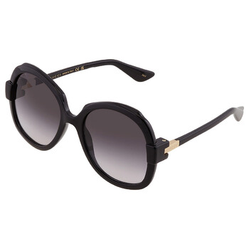 Gucci Sunglasses. Series number: GG1432S. Color code: 001. Shape: Butterfly. Lens Width: 57 mm. Lens Bridge: 20 mm. Arm Length: 135 mm. 100% UV protection. Non-Polarized. Frame Material: Plastic. Frame Color: Black. Lenses Type: Grey. Rim Style: Full-Rim. UPC/EAN code: 889652438351. Gucci Grey Butterfly Ladies Sunglasses GG1432S 001 57.