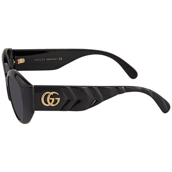 Gucci Sunglasses. Series number: GG0809S. Color code: 001. Color: Black. Shape: Cat Eye. Lens Width: 52 mm. Lens Bridge: 19 mm. Arm Length: 145 mm. 100% UV protection. Frame Material: Acetate. Frame Color: Black. Lenses Type: Grey. Rim Style: Full-Rim. UPC/EAN code: 889652308586. Gucci Grey Cat Eye Ladies Sunglasses GG0809S 001 52 .