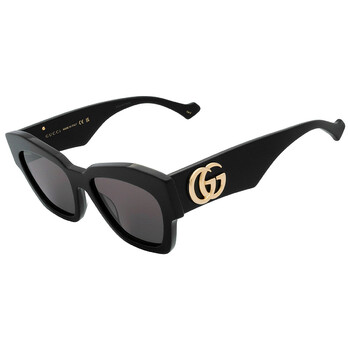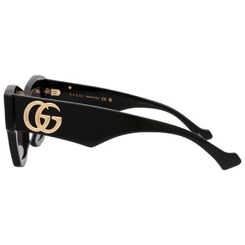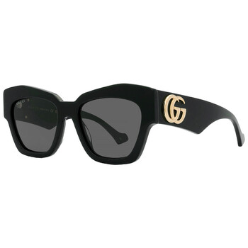 Gucci Sunglasses. Series number: GG1422S. Color code: 001. Shape: Cat Eye. Lens Width: 55 mm. Lens Bridge: 19 mm. Arm Length: 145 mm. 100% UV protection. Non-Polarized. Frame Material: Recycled Acetate. Frame Color: Black. Lenses Type: Grey. Rim Style: Full-Rim. UPC/EAN code: 889652439754. Gucci Grey Cat Eye Ladies Sunglasses GG1422S 001 55.