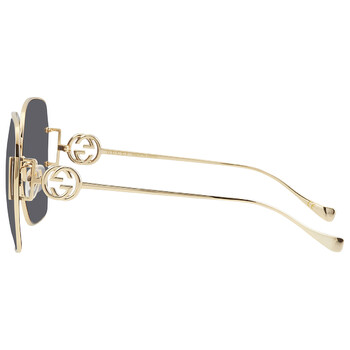 Gucci Sunglasses. Series number: GG1207SA. Color code: 002. Shape: Geometric. Lens Width: 64 mm. Lens Bridge: 16 mm. Arm Length: 140 mm. 100% UV protection. Frame Material: Metal. Frame Color: Gold. Lenses Type: Grey. Rim Style: Full-Rim. UPC/EAN code: 889652392301. Gucci Grey Geometric Ladies Sunglasses GG1207SA 002 64.