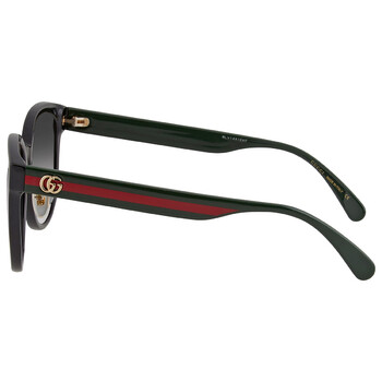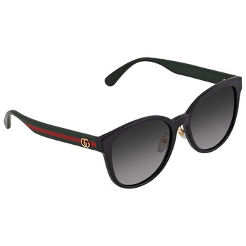 Gucci Sunglasses. Series number: GG0854SK. Color code: 001. Color: Black. Shape: Round. Lens Width: 56 mm. Lens Bridge: 19 mm. Arm Length: 145 mm. 100% UV protection. Non-Polarized. Frame Material: Plastic. Frame Color: Black;Green. Lenses Type: Grey Gradient. Rim Style: Full-Rim. UPC/EAN code: 889652310404. Gucci Grey Gradient Round Ladies Sunglasses GG0854SK 001 56.