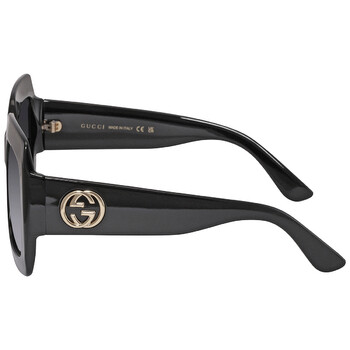 Gucci Sunglasses. Series number: GG0053SN. Color code: 001. Shape: Square. Lens Width: 54 mm. Lens Bridge: 25 mm. Arm Length: 140 mm. 100% UV protection. Frame Material: Acetate. Frame Color: Black. Lenses Type: Grey Gradient. Rim Style: Full-Rim. UPC/EAN code: 889652386997. Gucci Grey Gradient Square Ladies Sunglasses GG0053SN 001 54.