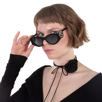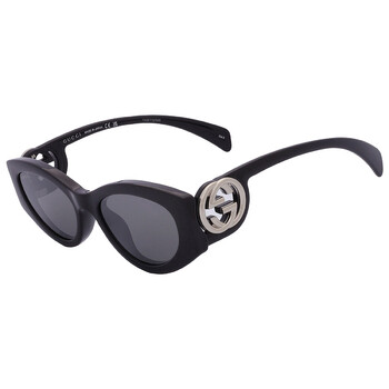 Gucci Sunglasses. Series number: GG1691S. Color code: 001. Shape: Cat Eye. Lens Width: 54 mm. Lens Bridge: 19 mm. Arm Length: 145 mm. 100% UV protection. Non-Polarized. Frame Material: Plastic. Frame Color: Shiny Black. Lenses Type: Grey Mirror. Rim Style: Full-Rim. UPC/EAN code: 889652498966. Gucci Grey Mirror Cat Eye Ladies Sunglasses GG1691S 001 54.