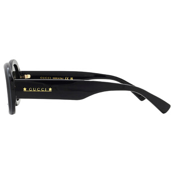 Gucci Sunglasses. Series number: GG1587S. Color code: 001. Shape: Oval. Lens Width: 52 mm. Lens Bridge: 22 mm. Arm Length: 145 mm. 100% UV protection. Non-Polarized. Frame Material: Recycled Acetate. Frame Color: Black. Lenses Type: Grey. Rim Style: Full-Rim. UPC/EAN code: 889652467740. Gucci Grey Oval Ladies Sunglasses GG1587S 001 52.