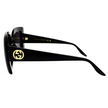 Gucci Sunglasses. Series number: GG0896S. Color code: 001. Shape: Rectangular. Lens Width: 52 mm. Lens Bridge: 25 mm. Arm Length: 145 mm. 100% UV protection. Frame Material: Acetate. Frame Color: Black. Lenses Type: Grey. Rim Style: Full-Rim. UPC/EAN code: 889652326429. Gucci Grey Rectangular Ladies Sunglasses GG0896S 001 52.