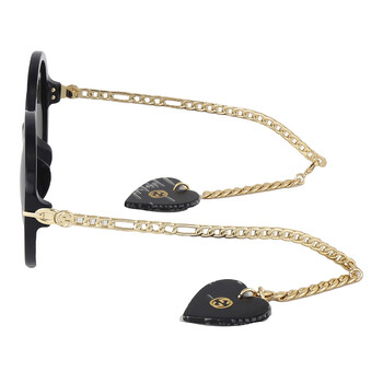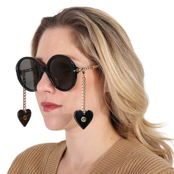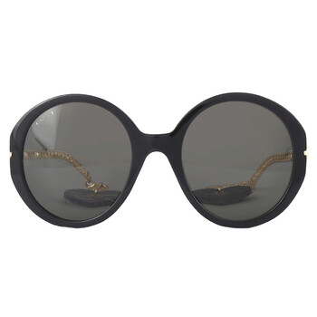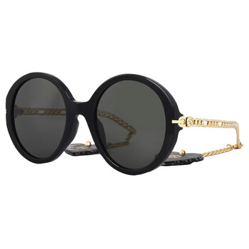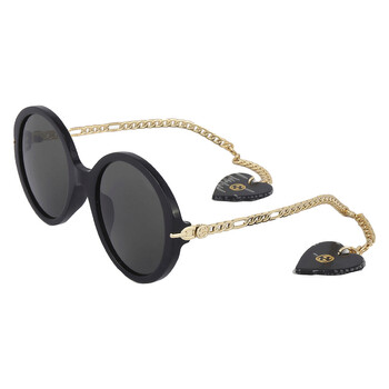 Gucci Sunglasses. Series number: GG0726S. Color code: 005. Shape: Round. Lens Width: 56 mm. Lens Bridge: 23 mm. Arm Length: 135 mm. 100% UV protection. Frame Material: Acetate. Frame Color: Black. Lenses Type: Grey. Rim Style: Full-Rim. UPC/EAN code: 889652340623. Gucci Grey Round Ladies Sunglasses GG0726S 005 56.