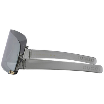 Gucci Sunglasses. Series number: GG1637S. Color code: 002. Shape: Shield. Lens Width: 99 mm. Arm Length: 115 mm. 100% UV protection. Frame Material: Acetate. Frame Color: Grey Crystal. Lenses Type: Grey. Rim Style: Semi-Rimless. UPC/EAN code: 889652475639. Gucci Grey Shield Ladies Sunglasses GG1637S 002 99.