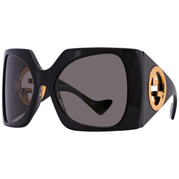 Gucci Sunglasses. Series number: GG1255S. Color code: 001. Shape: Wrap. Lens Width: 64 mm. Lens Bridge: 20 mm. Arm Length: 125 mm. 100% UV protection. Non-Polarized. Frame Material: Acetate. Frame Color: Shiny Black with Gold. Lenses Type: Grey. Rim Style: Full-Rim. UPC/EAN code: 889652412429. Gucci Grey Wrap Ladies Sunglasses GG1255S 001 64.