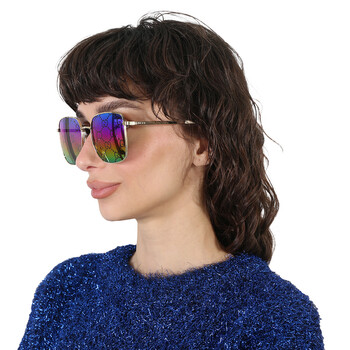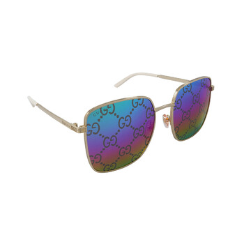 Gucci Sunglasses. Series number: GG0802S. Color code: 004. Size: 57. Shape: Square. Lens Width: 57 mm. Lens Bridge: 19 mm. Arm Length: 145 mm. 100% UV protection. Non-Polarized. Frame Material: Metal. Frame Color: Gold. Lenses Type: Multicolor. Rim Style: Full-Rim. UPC/EAN code: 889652310121. Gucci Multicolor Square Ladies Sunglasses GG0802S 004 57 .