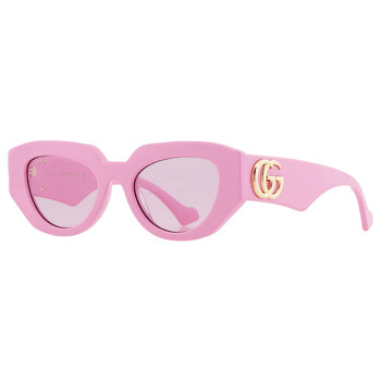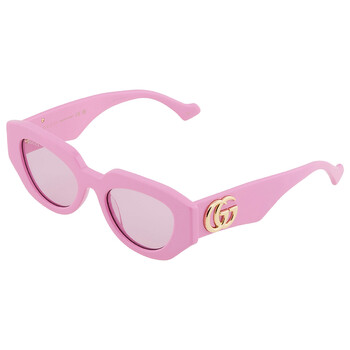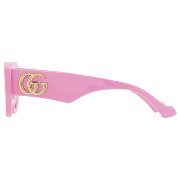 Gucci Sunglasses. Series number: GG1421S. Color code: 004. Shape: Geometric. Lens Width: 51 mm. Lens Bridge: 20 mm. Arm Length: 145 mm. 100% UV protection. Non-Polarized. Frame Material: Recycled Acetate. Frame Color: Pink. Lenses Type: Pink. Rim Style: Full-Rim. UPC/EAN code: 889652439105. Gucci Pink Geometric Ladies Sunglasses GG1421S 004 51.