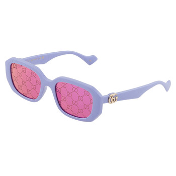 Gucci Sunglasses. Series number: GG1535S. Color code: 004. Shape: Geometric. Lens Width: 54 mm. Lens Bridge: 20 mm. Arm Length: 140 mm. 100% UV protection. Non-Polarized. Frame Material: Plastic. Frame Color: Violet. Lenses Type: Pink Logo. Rim Style: Full-Rim. UPC/EAN code: 889652468259. Gucci Pink Logo Geometric Ladies Sunglasses GG1535S 004 54.