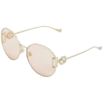 Gucci Sunglasses. Series number: GG1206SA. Color code: 004. Shape: Round. Lens Width: 63 mm. Lens Bridge: 18 mm. Arm Length: 140 mm. 100% UV protection. Non-Polarized. Frame Material: Metal. Frame Color: Gold. Lenses Type: Pink. Rim Style: Full-Rim. UPC/EAN code: 889652392448. Gucci Pink Round Ladies Sunglasses GG1206SA 004 63.
