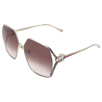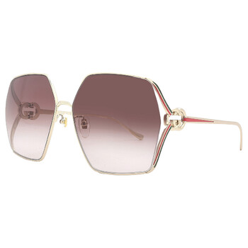 Gucci Sunglasses. Series number: GG1322SA. Color code: 003. Shape: Geometric. Lens Width: 64 mm. Lens Bridge: 16 mm. Arm Length: 135 mm. 100% UV protection. Non-Polarized. Frame Material: Metal. Frame Color: Gold. Lenses Type: Red. Rim Style: Full-Rim. UPC/EAN code: 889652414430. Gucci Red Geometric Ladies Sunglasses GG1322SA 003 64.