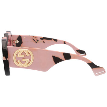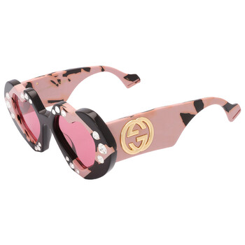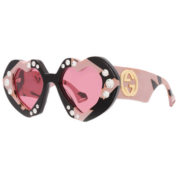 Gucci Sunglasses. Series number: GG1329S. Color code: 001. Shape: Irregular. Lens Width: 48 mm. Lens Bridge: 18 mm. Arm Length: 145 mm. 100% UV protection. Non-Polarized. Frame Material: Recycled Acetate. Frame Color: Black Havana. Lenses Type: Red. Rim Style: Full-Rim. UPC/EAN code: 889652414843. Gucci Red Irregular Ladies Sunglasses GG1329S 001 48.