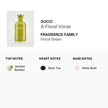 Launched in 2023 by the iconic design house of Gucci, A Floral Verse is a shining star in the Floral Green fragrance family. It opens with the intoxicating top note of jasmine sambac, leading your senses into a mesmerizing world of natural beauty. The heart note of black tea adds a rich, exotic twist to the composition, offering a depth and complexity that is truly mesmerizing.