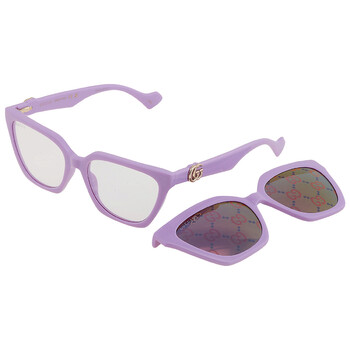 Gucci Sunglasses. Series number: GG1542S. Color code: 002. Shape: Cat Eye. Lens Width: 55 mm. Lens Bridge: 17 mm. Arm Length: 140 mm. 100% UV protection. Non-Polarized. Frame Material: Plastic. Frame Color: Violet. Lenses Type: Violet Logo Clip-On. Rim Style: Full-Rim. UPC/EAN code: 889652468112. Gucci Violet Logo Clip-On Cat Eye Ladies Sunglasses GG1542S 002 55.