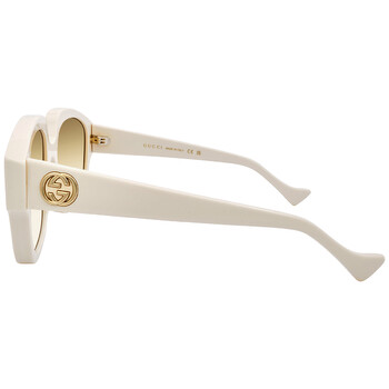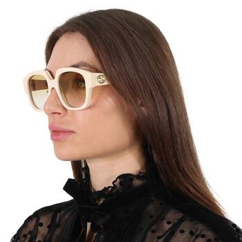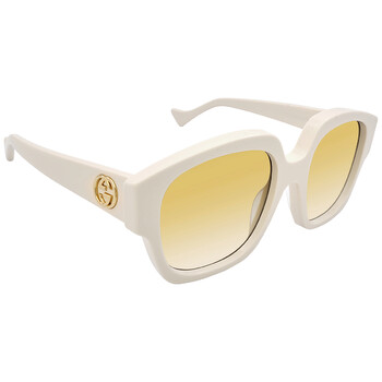 Gucci Sunglasses. Series number: GG1372S. Color code: 001. Shape: Square. Lens Width: 56 mm. Lens Bridge: 20 mm. Arm Length: 140 mm. 100% UV protection. Frame Material: Acetate. Frame Color: White. Lenses Type: Yellow Gradient. Rim Style: Full-Rim. UPC/EAN code: 889652417240. Gucci Yellow Gradient Square Ladies Sunglasses GG1372S 001 56.