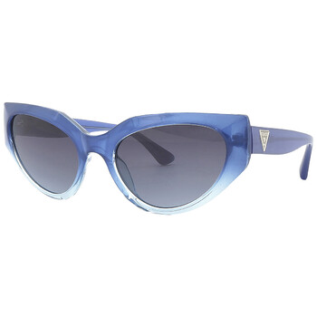 Guess Sunglasses. Series number: GU7787-A. Color code: 92W. Shape: Cat Eye. Lens Width: 57 mm. Lens Bridge: 20 mm. Arm Length: 135 mm. 100% UV protection. Non-Polarized. Frame Material: Plastic. Frame Color: Blue/Other. Lenses Type: Blue Gradient. Rim Style: Full-Rim. UPC/EAN code: 889214288042. Guess Blue Gradient Cat Eye Ladies Sunglasses GU7787-A 92W 57.