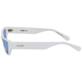 Guess Sunglasses. Series number: GU8232. Color code: 21V. Shape: Rectangular. Lens Width: 56 mm. Lens Bridge: 17 mm. Arm Length: 145 mm. 100% UV protection. Frame Color: White. Lenses Type: Blue. Rim Style: Full-Rim. UPC/EAN code: 889214282118. Guess Blue Rectangular Unisex Sunglasses GU8232 21V 56.