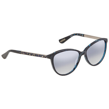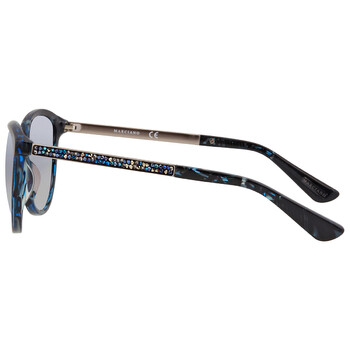 Guess by Marciano Sunglasses. Series number: GM0755. Color code: 90C. Shape: Cat Eye. Lens Width: 57 mm. Lens Bridge: 15 mm. Arm Length: 135 mm. 100% UV protection. Frame Material: Plastic. Frame Color: Shiny Blue. Lenses Type: Smoke Mirror. Rim Style: Full-Rim. UPC/EAN code: 664689840311. Guess by Marciano Smoke Mirror Cat Eye Ladies Sunglasses GM0755 90C 57.